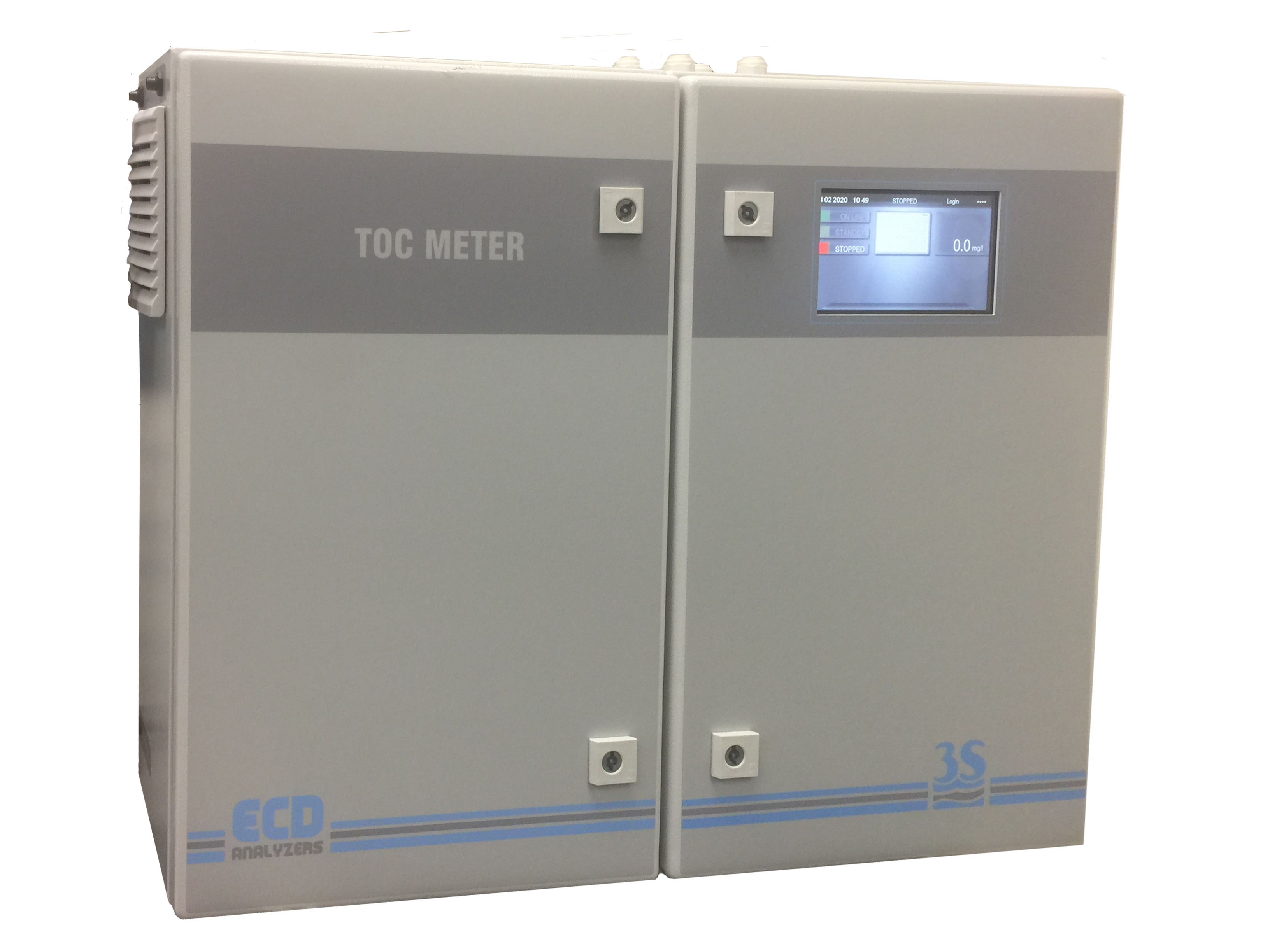 ECD’s TOC Analyzer is simple to use: the water sample is first acidified and then sparged to remove inorganic carbon. The remaining liquid is mixed with sodium persulfate and digested by two high-performance reactors. The resulting CO2 is then stripped from the liquid and, after drying, its concentration is measured by the NDIR analyzer. The analyzer measures TOC levels