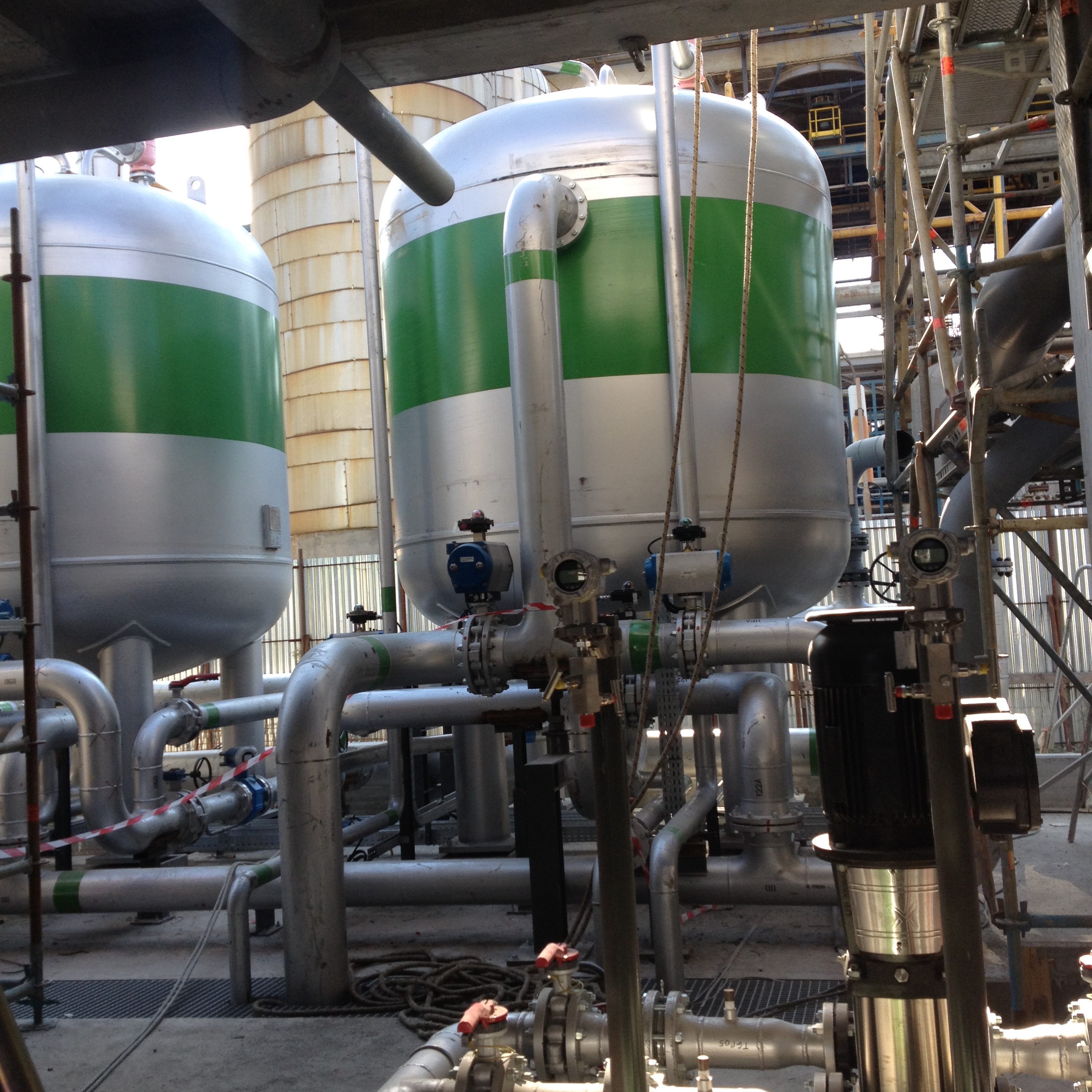 Pressure vessels are designed and tested according with ASME VIII, ASTM and PED. The company's recent installation is a filtration package with ASME VIII pressure filters with special selected media (for dual-media filters) for industrial water reuse in a refinery.